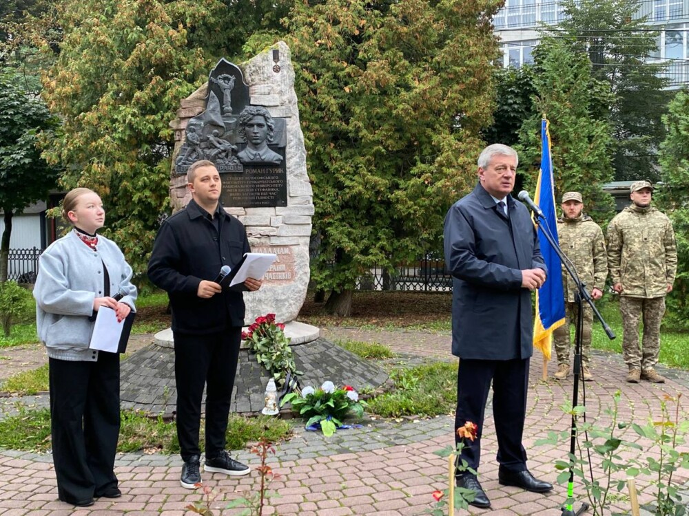 Сьогодні багато наших студентів і випускників служать у лавах Збройних сил України. На жаль, ми вже вшанували пам’ять 72 студентів та працівників університету, які віддали життя за свободу. Сотні нині боронять Україну на фронті, а тисячі створюють умови для її розвитку, зміцнення і перемоги. Тому для нас пам’ять про Романа Гурика – це символ незламності, жертовності й віри у вільне майбутнє України», — поділився в.о. ректора КНУВС Ігор Цепенда.